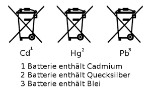 Bitte achten Sie darauf, dass Sie Ihre alten Batterien/Akkus, so wie es der Gesetzgeber vorschreibt, an einer kommunalen Sammelstelle oder im Handel vor Ort abgeben. Die Entsorgung über den gewöhnlichen Hausmüll ist verboten und verstößt gegen das Batteriegesetz. Die Abgabe ist für Sie kostenlos. Gerne können Sie die bei uns erworbenen Batterien/Akkus nach dem Gebrauch auch uns unentgeltlich zurückgeben. Die Rücksendung der Batterien/Akkus an uns muss in jedem Fall ausreichend frankiert erfolgen. Rücksendungen von Batterien/Akkus sind zu richten an: