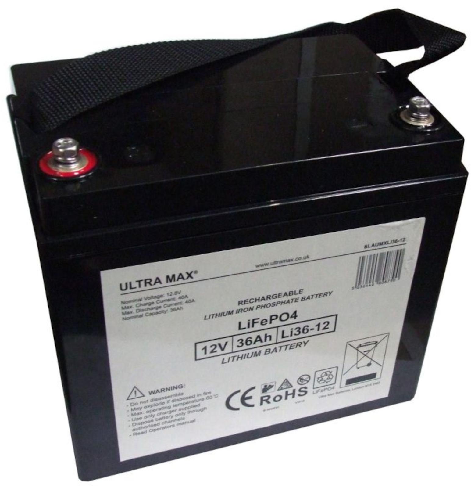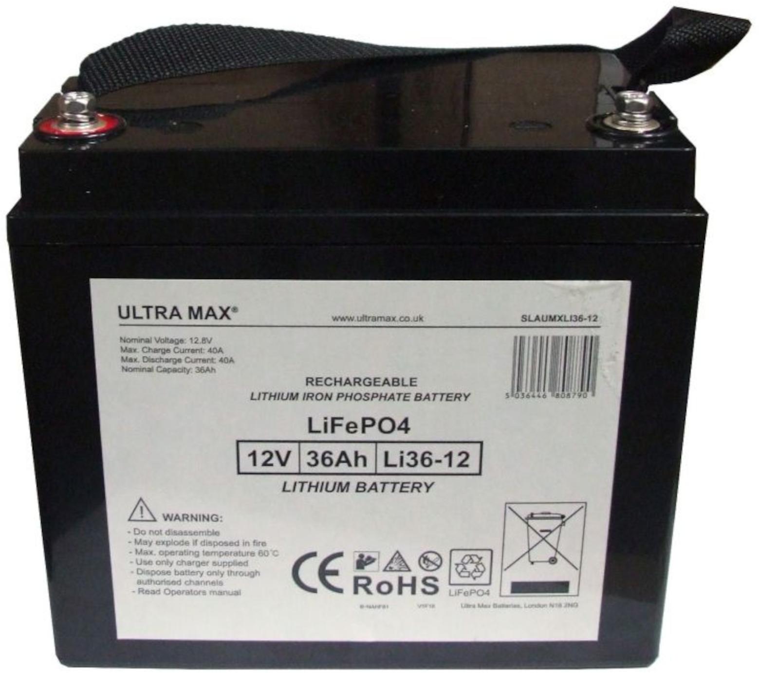 Produktinformationen "UltraMax SLAUMXLI36‑12 – 12 V 36 Ah LiFePO₄‑Batterie SLAUMXLI36‑12"