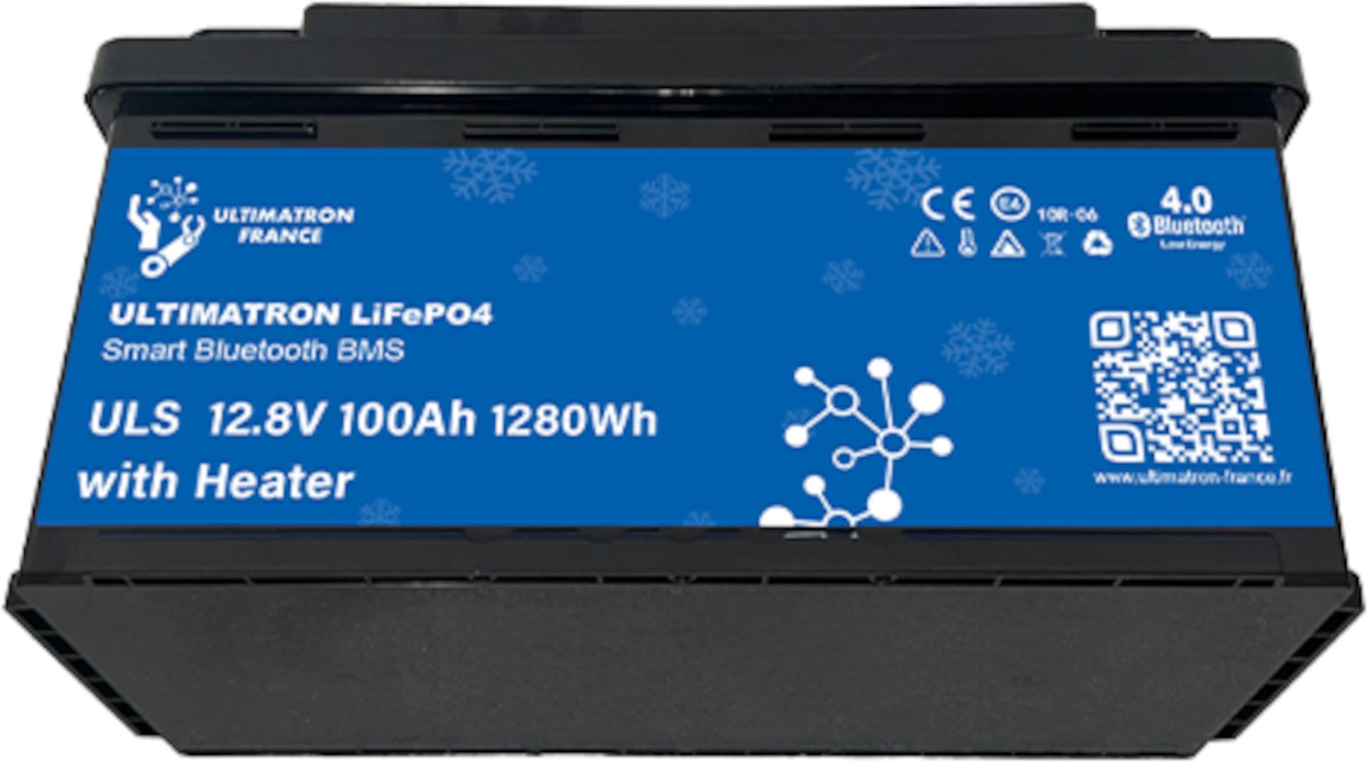 Ultimatron LifePo4 Lithiumbatterie 12,8 V 100Ah ULS-12-100H mit Bluetooth und Smart BMS integriert und Heizung Kunststoffgehäuse Batterie geeignet für den Einbau unter dem Sitz gem. § 12 Abs. 3 UStG ULS-12-100H
