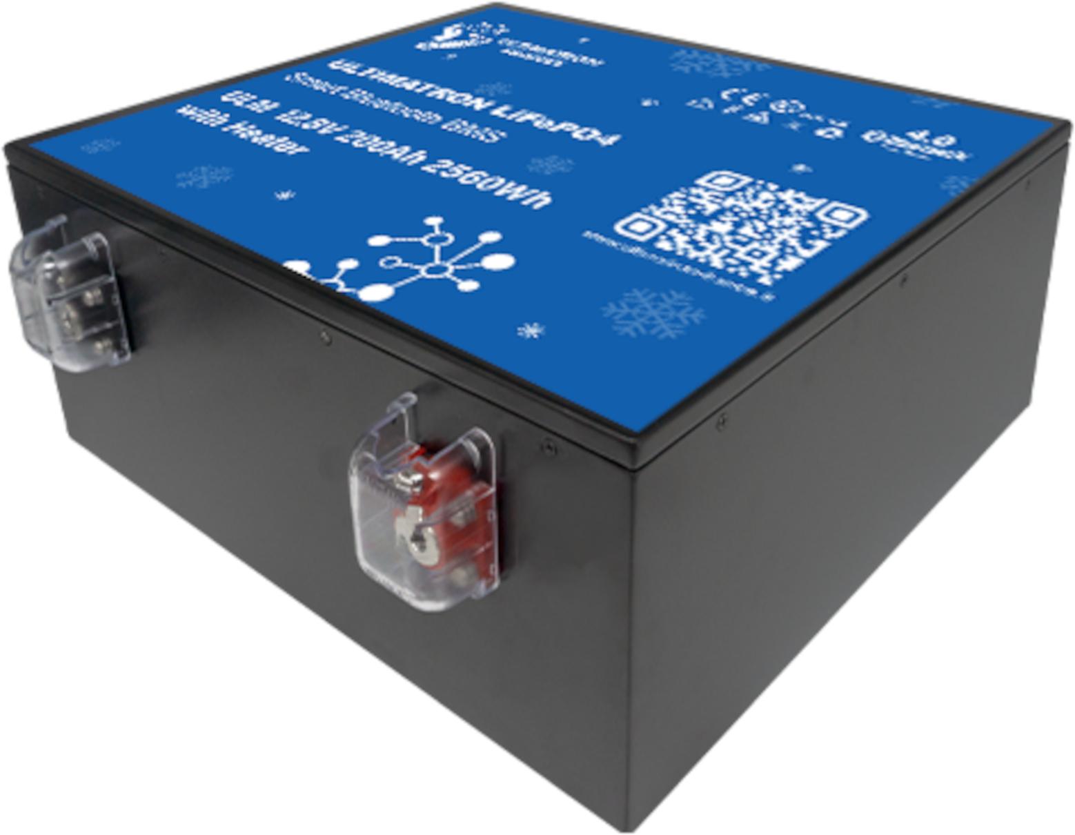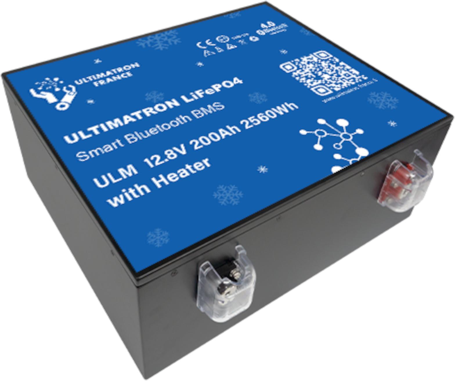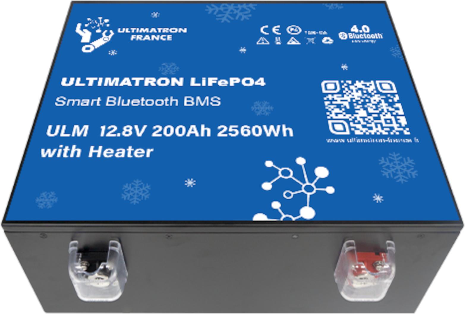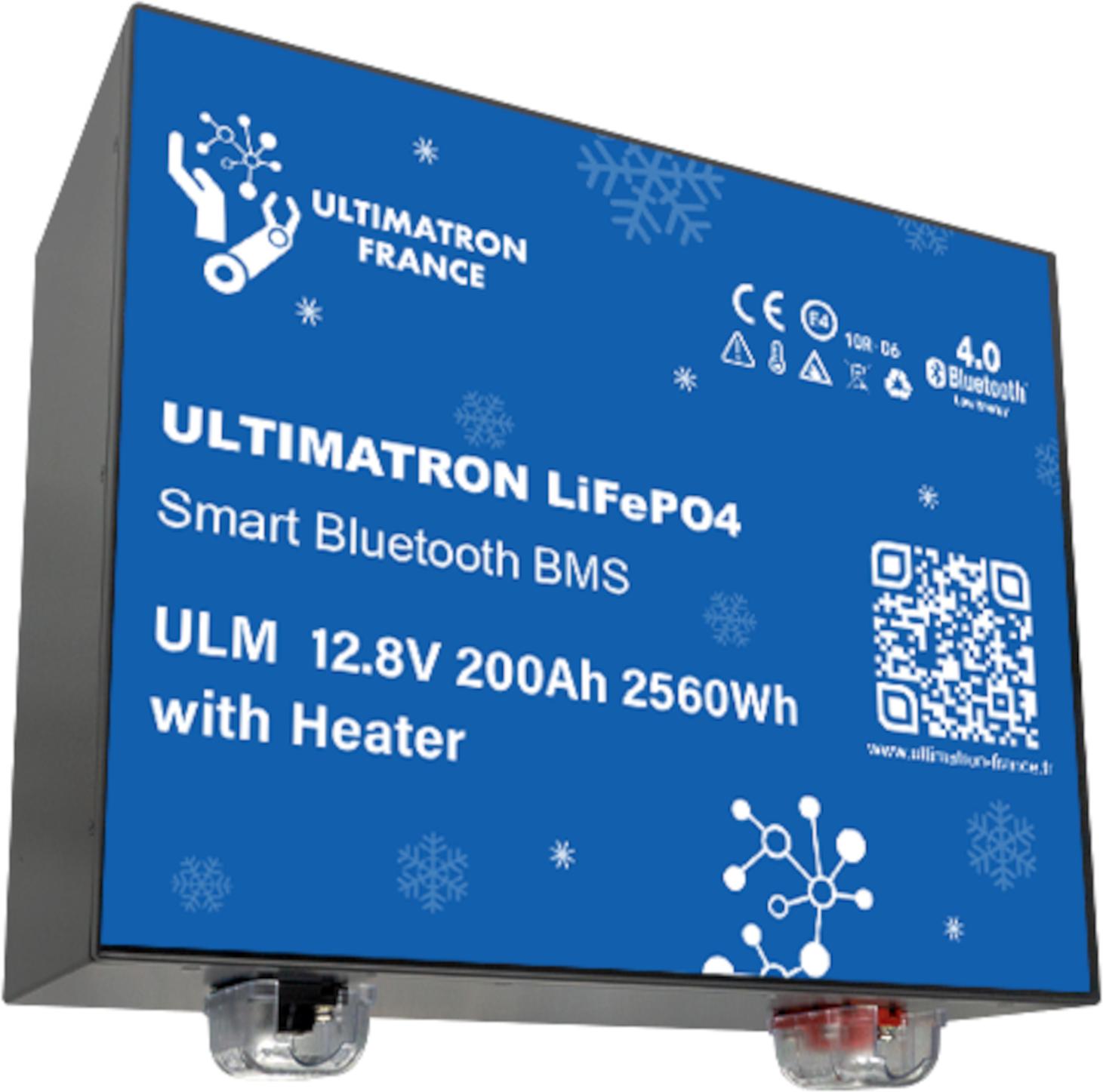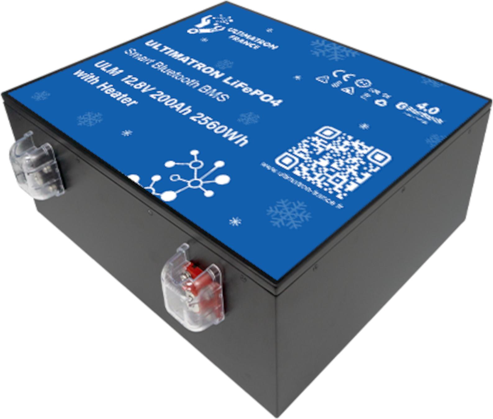 Ultimatron LifePo4 Lithiumbatterie 12,8 V 200Ah ULM-12-200H mit Bluetooth und Smart BMS integriert und Heizung Batterie geeignet für den Einbau unter dem Sitz gem. § 12 Abs. 3 UStG ULM-12-200H