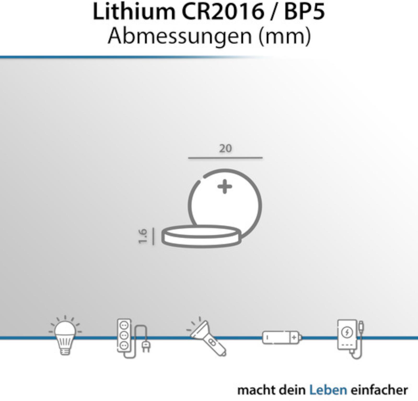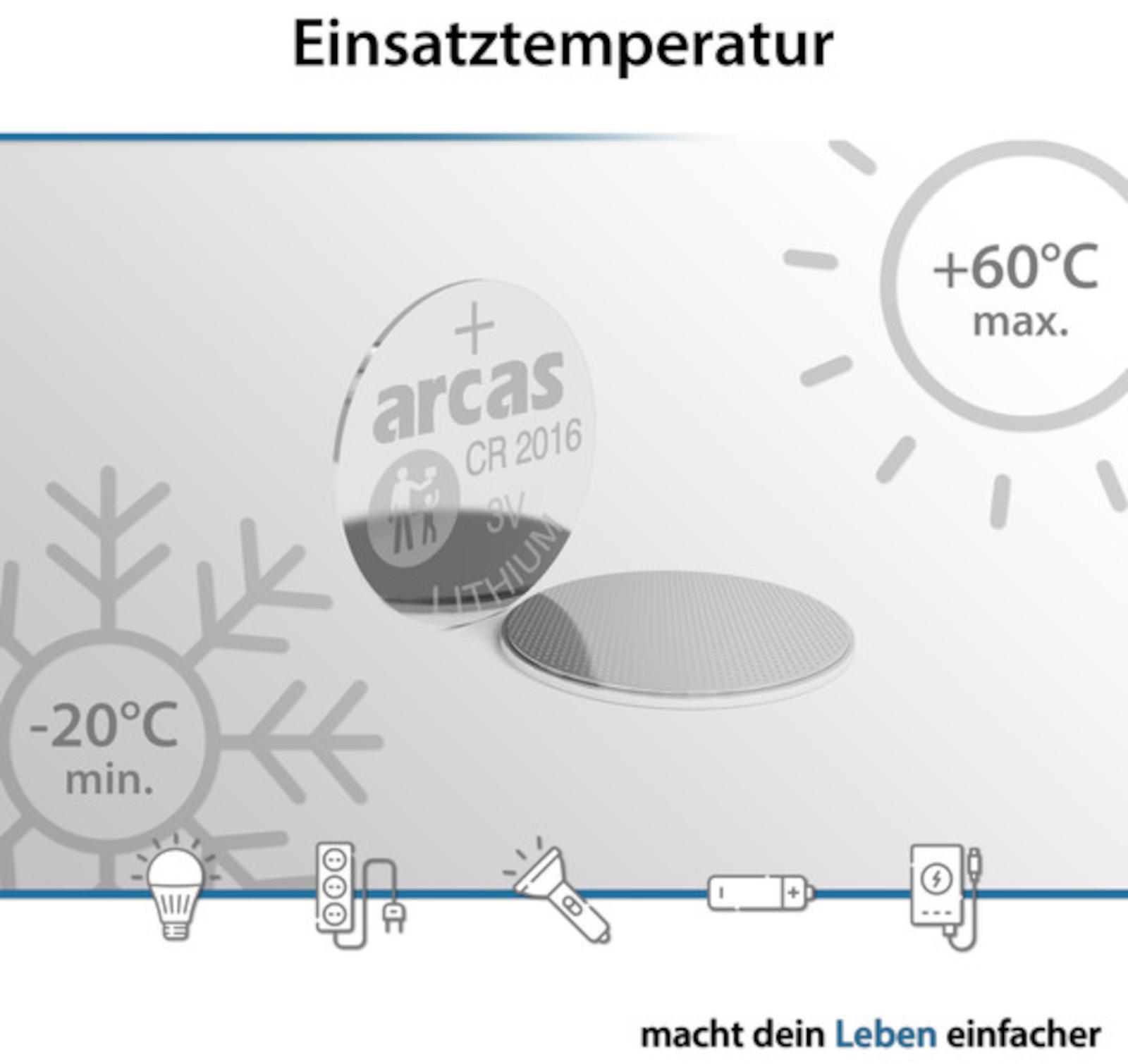 Arcas Lithium CR2016 Knopfzelle Lithium CR2016 für elektronische Kleingeräte wie Uhren, Taschenrechner, Kameras, Spielzeug und andere Geräte
